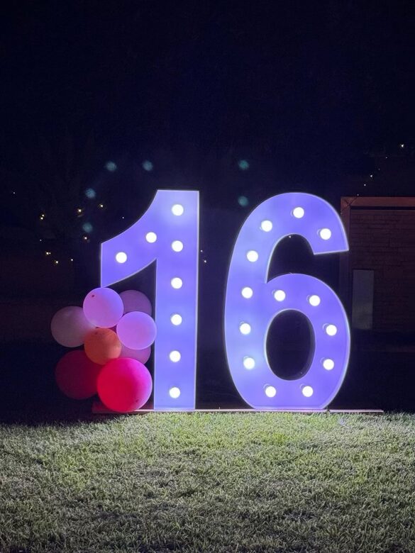 Make a bold statement at your event with our oversized Marquee Light up Numbers . Standing tall and glowing bright, these classic white numbers with built-in warm LED bulbs create the perfect photo backdrop or centrepiece for birthdays, anniversaries, and milestone celebrations. Choose any combination of light up numbers to suit your occasion — from “18” to “50” or “2025”. Perfect to set up with other props, see our cake plinths and mesh backdrop.
